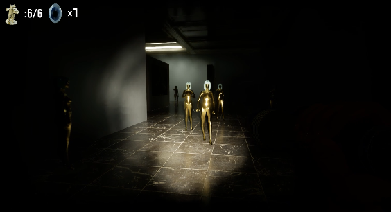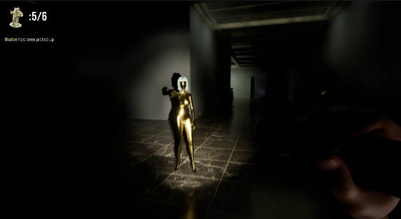 Collect 6 golden statues and escape the gallery.